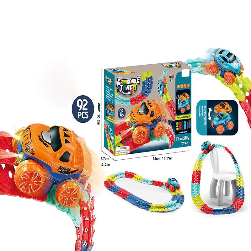 Variabelt fleksibelt spor: Drej den elektriske letvægtsbilbane legetøj med udsøgt teknologi, du kan magisk bøje banen i 360 grader 3D efter behov, hurtigt og nemt.