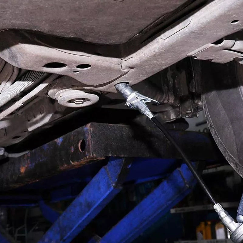 Tryk blot på niveauet for at låse og frigøre fedtkoblingen, det sparer masser af tid sammenlignet med den traditionelle kobling. Hurtigkoblingen er tydeligvis større og længere end en traditionel kobling, det super trange sted kan være svært at manøvrere, men tilbagetrukne smørenipler er nemmere, hvis 11/16" (1,75 cm) OD kan passe ind.