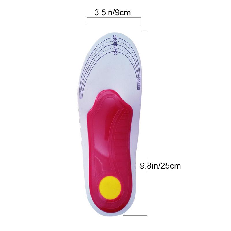 - 👞 [Funktion til støtte af buen] Denne fodindlægssål giver blid men fast støtte til flade fødder og lindrer plantar fascia-smerter. Den har også en dæmpende hælpude for at lindre stød ved at vågne op og løbe og stress ved at stå i lange perioder.