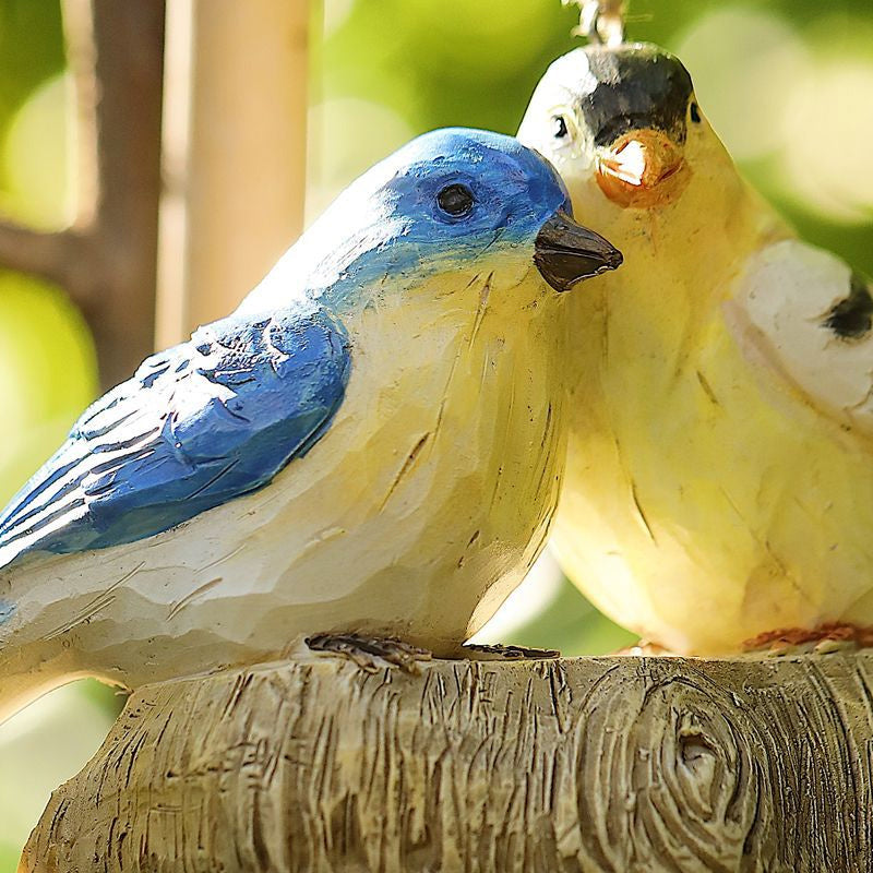 Lavet af harpiks og aluminiumsrør. Gode materialer giver gode produkter. Lyse farver gør fuglene livlige og søde.