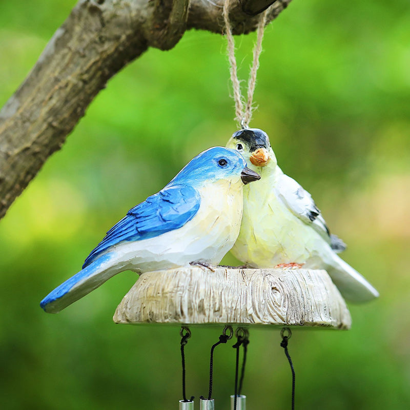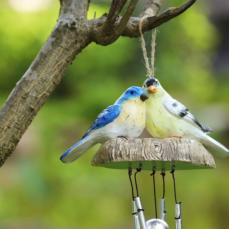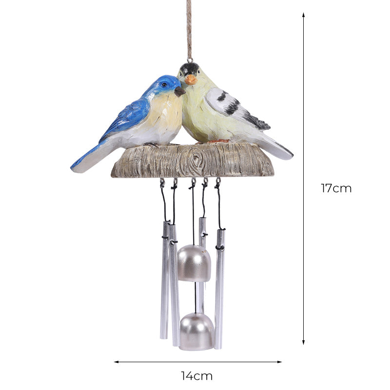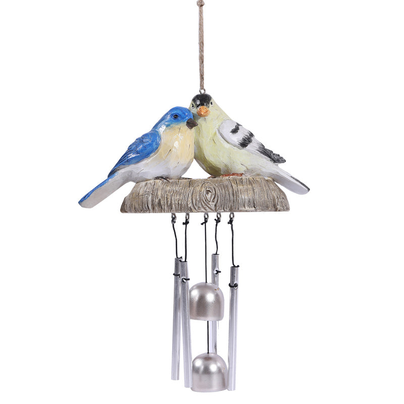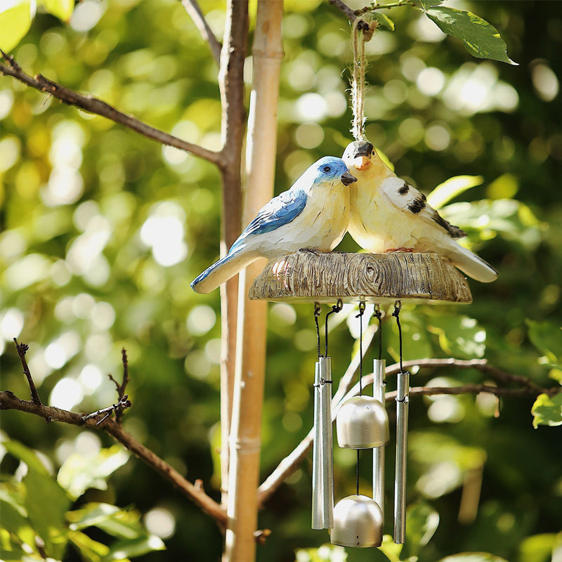 Unik vindklokke. 2 klokker giver en god lyd, når vinden blæser. De yderst detaljerede fugle gør din have mere energisk.