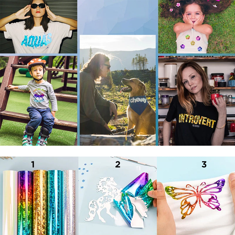 Holografisk varmeoverførselsvinyl handler alt sammen om skinnende farver og frihed til kreativitet! Med sin glitrende finish giver denne Rainbow-HTV varmeoverførselsvinyl dig mulighed for at sige "ja" til flere unikke og komplicerede designs.