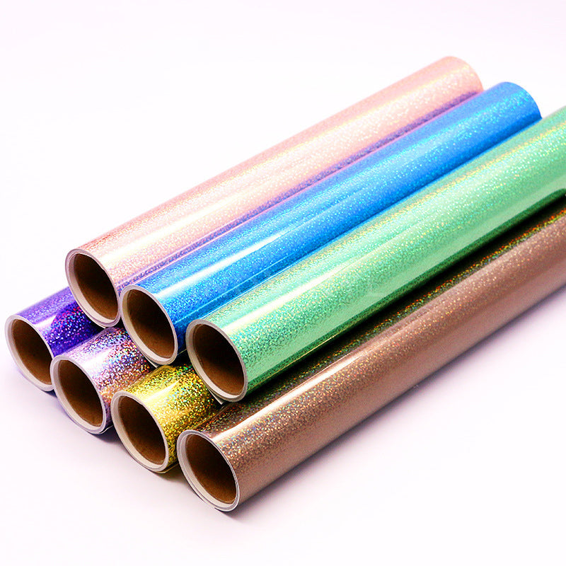 Pakke: 1* Glitrende Laser HTV Vinyl til Gør-det-selv T-shirts eller tekstiler Stryg-på vinyl