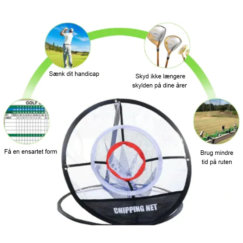 Golføvelsesnettet er et must for enhver golfspiller, der seriøst vil sænke deres score. Hav det sjovt derhjemme med en gentagelig opsætning og en sjov måde at øve på. Få mest muligt ud af dine dyre køller!