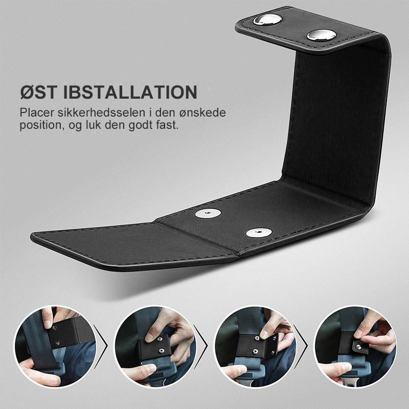 * Bilens sikkerhedsseler kan nogle gange være for stramme ved skuldre, nakke og ansigt. Sikkerhedsselejusteringen clipses nemt på skulderselen for at give ekstra slaphed for kørekomfort.