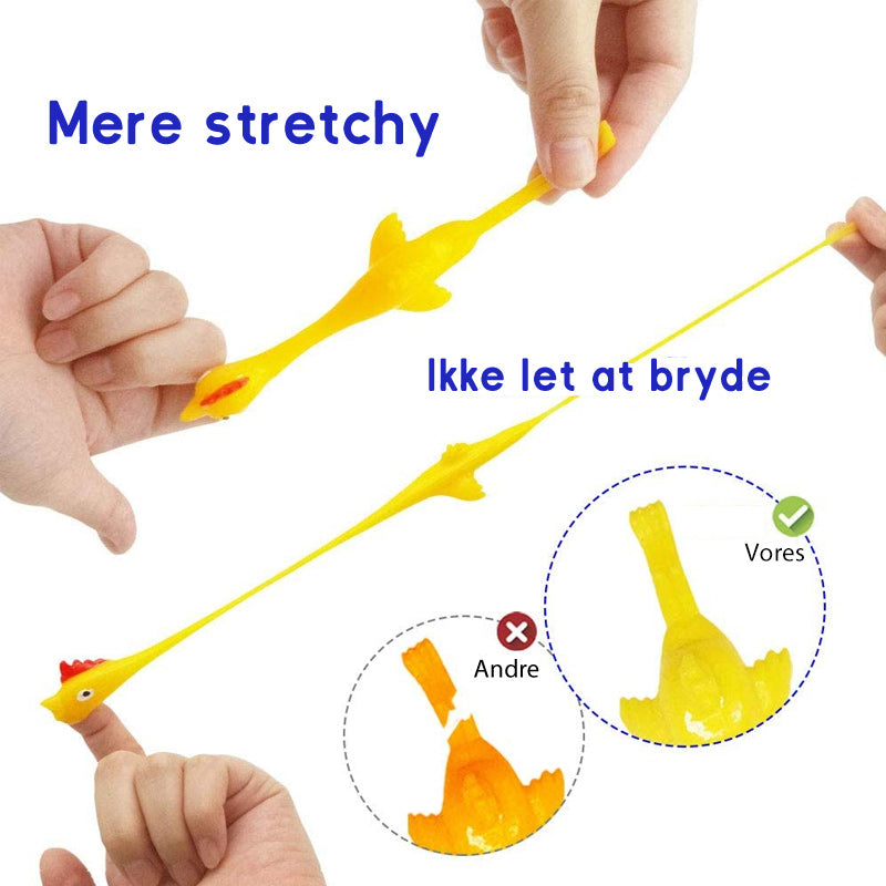Når slyngekyllingerne bliver snavsede, kan du vaske dem med vand og sæbe. Så fremstår de helt ubrugte! Meget robuste og kan genspilles.