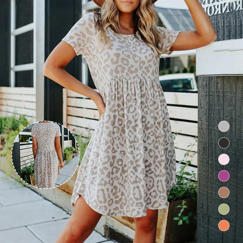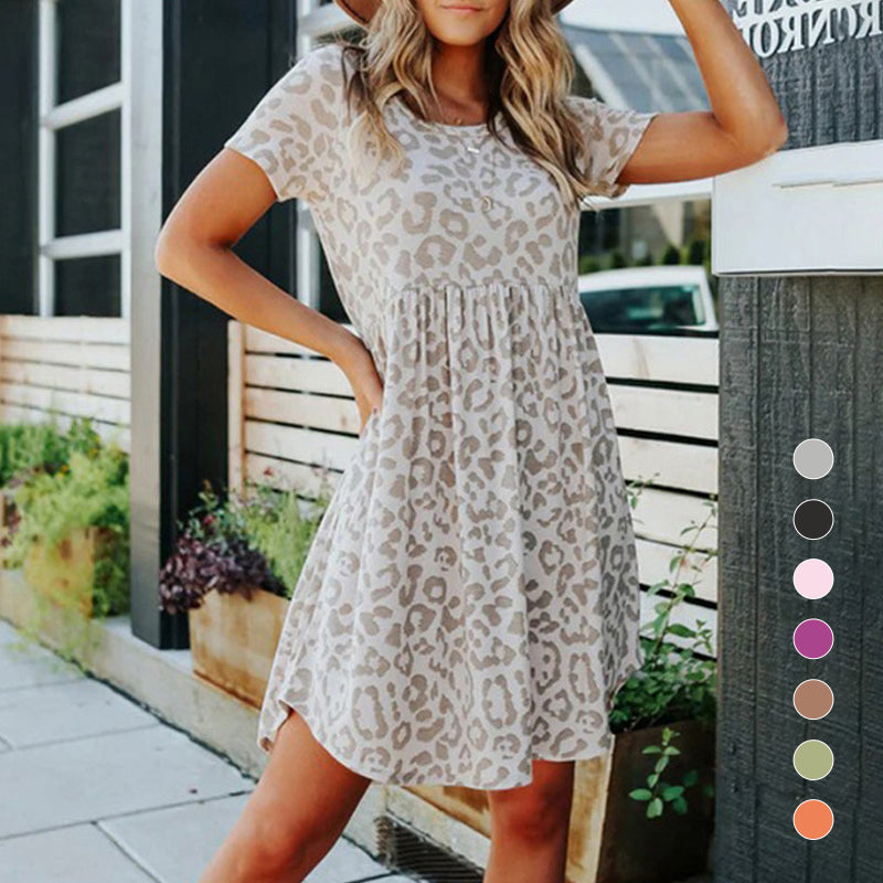 • Indlæs billede til gallerivisning Kjole med rund hals med leopardprint