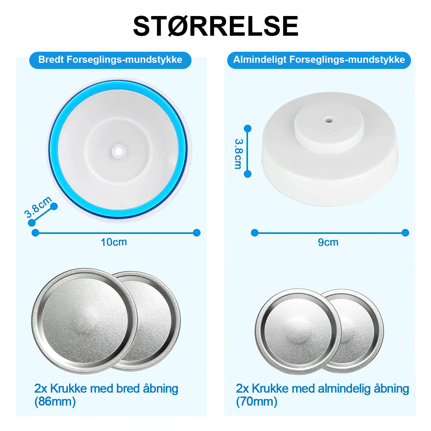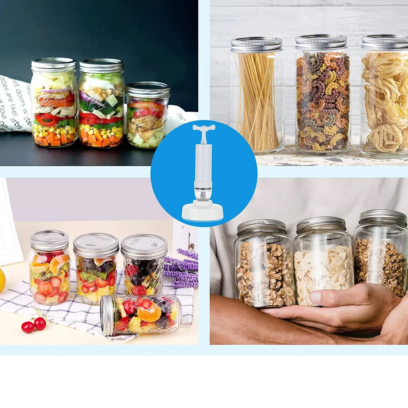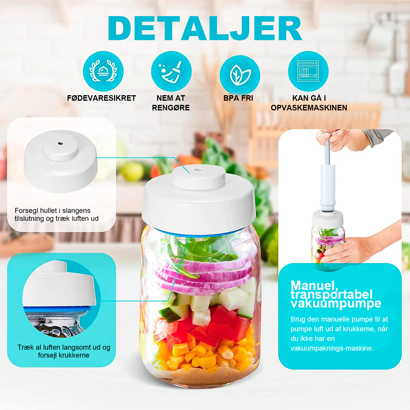 - Pump luft ud af murerglassene, Bevar friskheden af dine saucer, sennep, syltetøj, korn, nødder og meget mere.