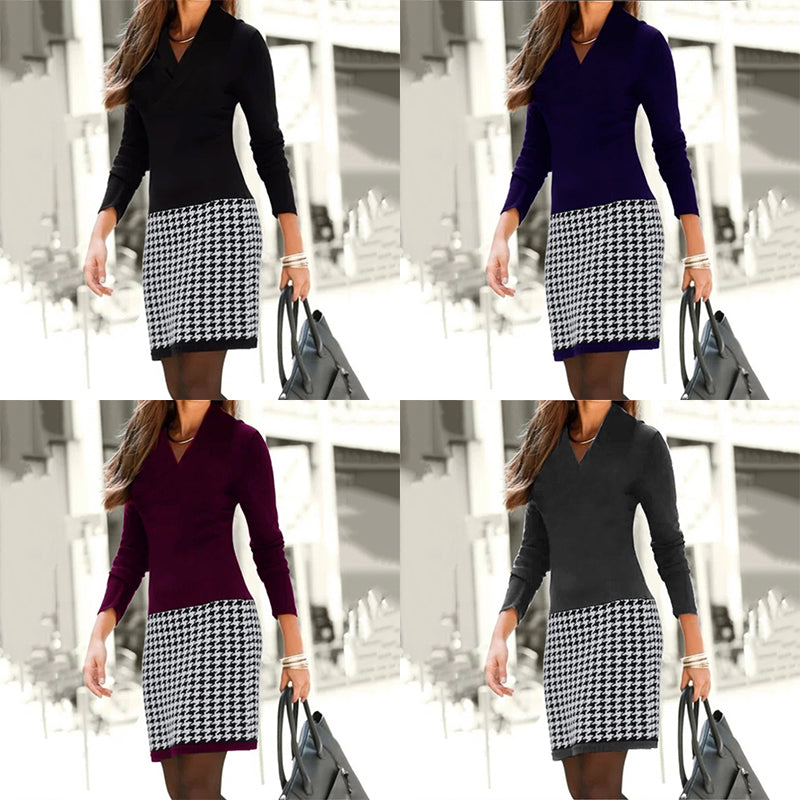 【Design】: blokkjole med sexet v-halsudskæring og lange ærmer. Mønsterdekoration, stilfuldt og klassisk, ensfarvet, enkelt og elegant design, for at forskønne pasformen - en must-have tilføjelse til foråret og efteråret.