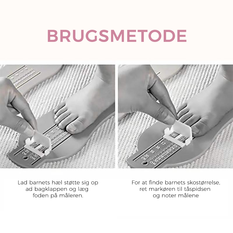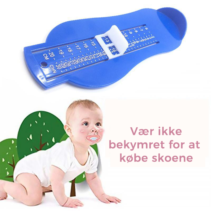 - Nemt værktøj til at måle dit barns fødder, så du kan vælge en passende og korrekt størrelse sko til dit barn.